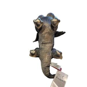 New with tags, 7.5" tall double headed dragon. It is 12" long. Green with shiny gold/silver ears, wings, and feet.