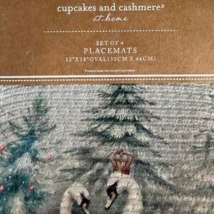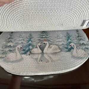 NWT 2025 Cupcakes and Cashmere set of 4 Oval Placemats Christmas Swimming Swans