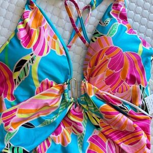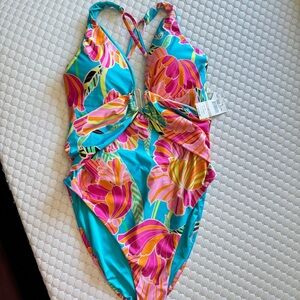 NWT 2025 Season Trina Turk Poppy Belted Plunge One Piece Swimsuit Size 12