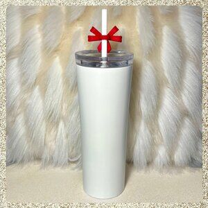 This adorable 2025 holiday tumbler features a clean white stainless steel body topped off with a cute red bow accent, perfect for the festive season. Itβs brand new with tags and never used.
