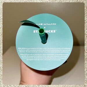 Gorgeous New Collaboration with Mike Willcox (renowned "Art Deco" artist) featuring this: 2025 Starbucks x Mike Willcox "Jungle Motif" Venti (24oz) Cold Cup Tumbler that features wildlife from different parts of Asia in a rich palette of navy, rust and jade green.