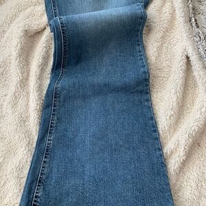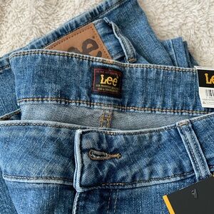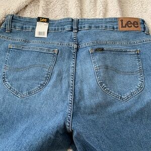 NWT – Lee flair jeans about 33 inches long medium length super flared really cute. Two pockets in front two back pockets one coin pocket zipper button closure mid rise. Color is a medium washed denim super cute with flip-flops hippie style or cowboy boots.