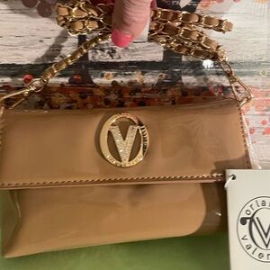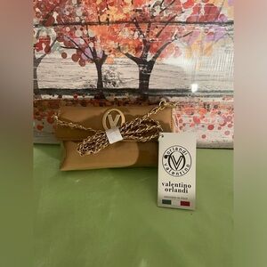 NWT $210 Valentino Orlandi Tan Crossbody Gold Braided Chanel Like Strap
