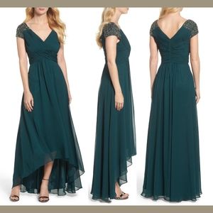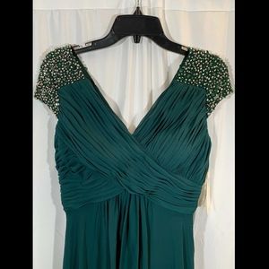NWT $218 Eliza J Embellished Pleated Chiffon Gown in Emerald [SZ 4‎ ]