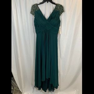 NWT $218 Eliza J Embellished Pleated Chiffon Gown in Emerald [SZ 4 ] #F593