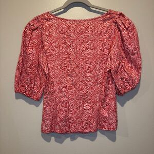 NWT $218 Parker Red Pebble Polka Dot Button Up Puff Sleeve Top Women’s XS