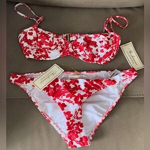 NWT $220 STUNNING Shoshanna Beach Vines Poppy/ White Bikini Set Top And Bottom