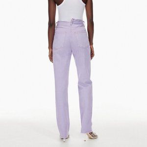 NWT $228 Agolde Lilac Criss Cross Straight Jean In Hard Candy Size 26 Raw Hems