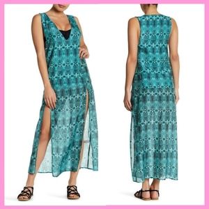 NWT $228 ViX Siena Silk Blend Snake Print Caftan CoverUp Green [SZ Medium ] #C894