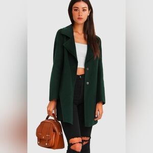 NWT $238 Belle & Bloom Ex-boyfriend Wool Blend Oversized Coat Dark Green Medium