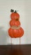 Charming orange metal stacked pumpkin yard stake. Perfect for autumn and Halloween decorations.