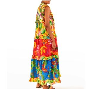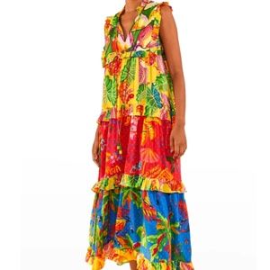 NWT $240 FARM RIO Mixed Prints Tiered Tropical Print Maxi Dress in size Small!