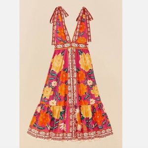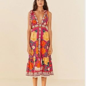 NWT $240 FARM Rio Flower Tapestry Midi Dress in FLOWERS TAPESTRY PINK!