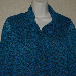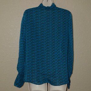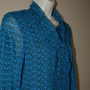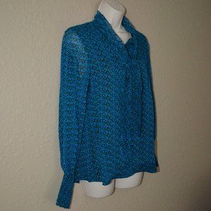 NWT $246 Sz S Karina Grimaldi Blue Black Cloud Print Long Sleeve Blouse Top