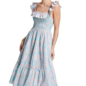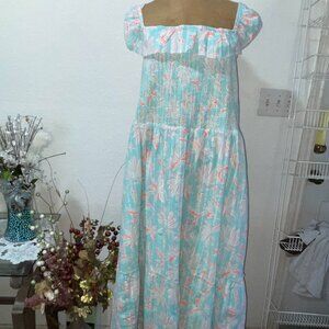 Turquoise floral Cay smocked dress from VINEYARD VINES. 2X. Retails for $248.