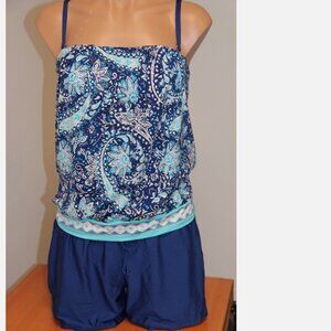 NWT 24th & Ocean by VM Swimsuit Bikini Tankini 2 pc set Sz S Navy Shorts Bandeau
