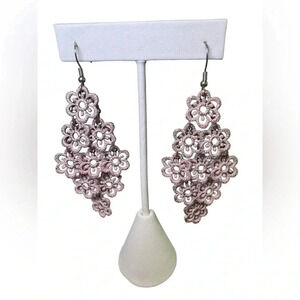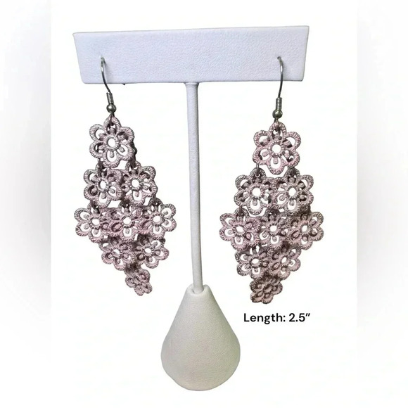 NWT 2.5” Purple Laces Flower Earring With Twotoned Metal Elegant Floral southern