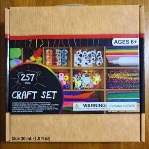 Comes with 3 sheets of googly eyes, 5 glitter popsicle sticks, 10 jumbo colored popsicle sticks, 12 fuzzy pipe cleaners, 15g gem stones, 15g sequins, 15g wooden beads, 24 tinsel pipe cleaners, 28 sheets of felt, 30ml white glue, and 50 pom poms