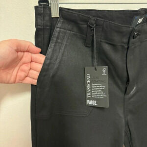 NWT $259 Paige Mayslie Straight Ankle Jean in Black Fog Luxe Coating - Black