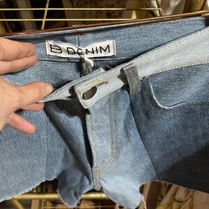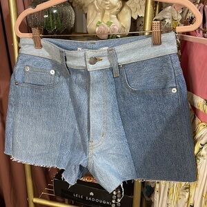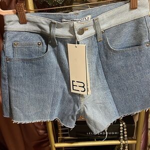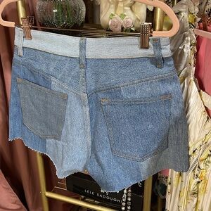 NWT $270 EB Denim Upcycled Patchwork Festival Denim Shorts In Blue Wash