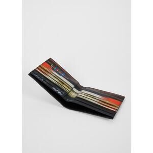 Made in Italy from a textured crosshatch leather, this black billfold wallet features an internal photo print of the seasonal 'Commuter Mini'. Complete with 8 card slots, a large notes compartment, and side slots. Finished with a silver Paul Smith signature logo on the front.