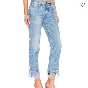 NWT Sz 25 3x1 NYC Revolve Stella Cropped Straight Fringe Frayed Hem Jeans