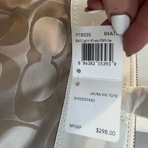 NWT $298 COACH F18335 Laura Signature Light Khaki/White Tote Bag Purse