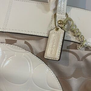 COACH F18335 Laura Signature Light Khaki/White Tote