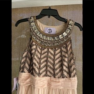 NWT $298 JS Collections Beaded Bodice Chiffon Gown in Light Pink [SZ 10 ]