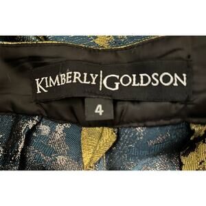 The NWT $298 Kimberly Goldson Women's 'Lynn' Teal Multi Wide-Leg Dress Pants in size 4 are a stylish addition to any woman's wardrobe. Made from polyester with a floral pattern, these pants feature a zip closure. The teal color adds a pop of color to any outfit, while the wide-leg style and pockets provide both comfort and functionality. Perfect for dressier occasions, these pants from Kimberly Goldson are sure to make a statement in your closet. Note: there are minor pulls throughout the pants due to the fabric, but otherwise in brand new condition with tags (originally $298).
