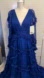NWT $298 MAC DUGGAL Blue Cascade Ruffle Puff Sleeve A Line Gown DRESS NAVY 68223