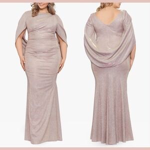 NWT $299 Betsy & Adam [ 6 ] Glitter Drape Cape Sleeve Trumpet Gown Pink #S1891