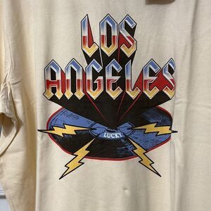 NWT 2 Lucky Brand Men's Graphic T-Shirts 1 Cream and 1 Gray.