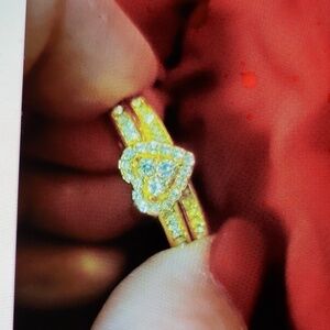 NWT 2PC Engagement setrhinestones heart shape, gold tone size 7