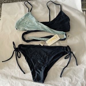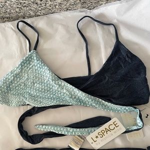 NWT 2PC L Space [ Large ] Chloe Wrap Bikini Top + Gazebo Bottom in Denim