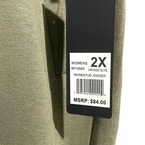NWT 2X Bebe Sport Olive Army Green Jogger Sweatpants Workout Pant Plus Size 2XL
