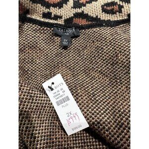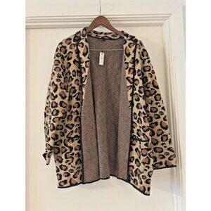 NWT 2X WomanTALBOTS Leopard Open Front Cozy Retro Teacher Sweater Cardigan