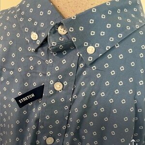 NWT 2XL blue button down shirt stretch long sleeves under arms across is 30 inches. Total length is 34 inches.