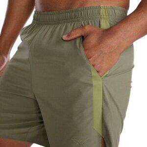 Brand new with tags in original sealed packaging 2XU Motion 6″ Shorts in size S. The color is sage green with brighter olive accents. 6 inches inseam, elastic waist, pockets.