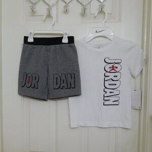 NEW with tag, 2pc Jordan shirt and sweat shorts in a size 4.