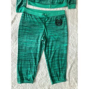 NWT 2pc Juicy Couture Womens Track Jacket Size L Green Zip Terry Hooded Rhinesto