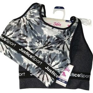 NWT 2pc Justice Sports Bras Black And Gray Tie-Dye Gray