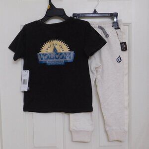 NWT 2pc Volcom Black True To This Shirt & Beige Joggers Set sz 4t