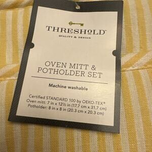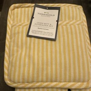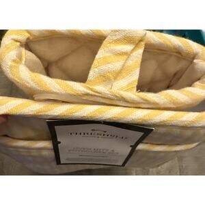 NWT 2pc Yellow Cotton Striped Oven Mitt & Pot Holder Set Threshold VERY NICE