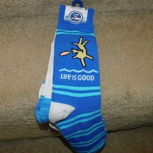 NWT 3 Prs LIFE IS GOOD Frisbee Dog Blue Socks