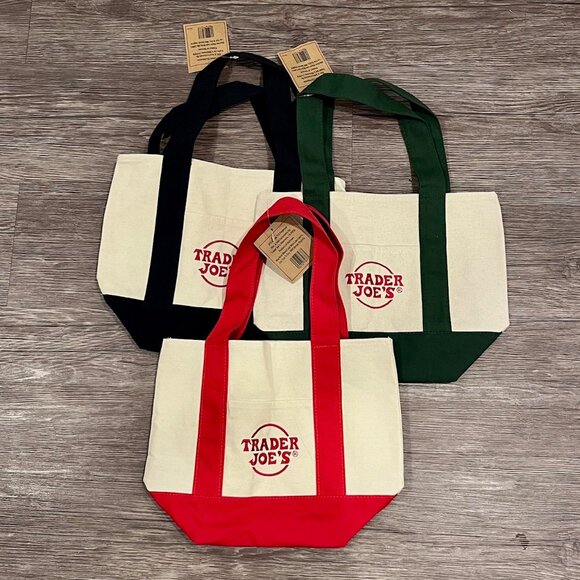 NWT 3 Trader Joe’s Mini Canvas Tote Lunch Bags Red Green Blue