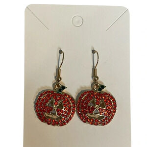 NWT 3 for $20 Super cute orange rhinestone gold fashion pierced drop dangle Jack’O’Lantern Halloween Earrings