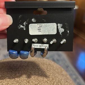 NWT, 3 pair earring set Rampage, silver hoops, blue iridescent hoops