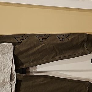 NWT Olive green sweatpants logo going down one side of pants. Pants have pockets.