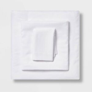 Refresh your bedscape with this Garment-Washed Microfiber Solid Sheet Set from Room Essentials™. This three-piece bedding set includes one fitted sheet, one flat sheet and one pillowcase, all in a solid hue for easy pairing with just about any comforter, pillow and decor style. Each piece is made from garment-washed microfiber fabric for a soft hand feel, along with a machine-washable design for quick and easy cleanup.